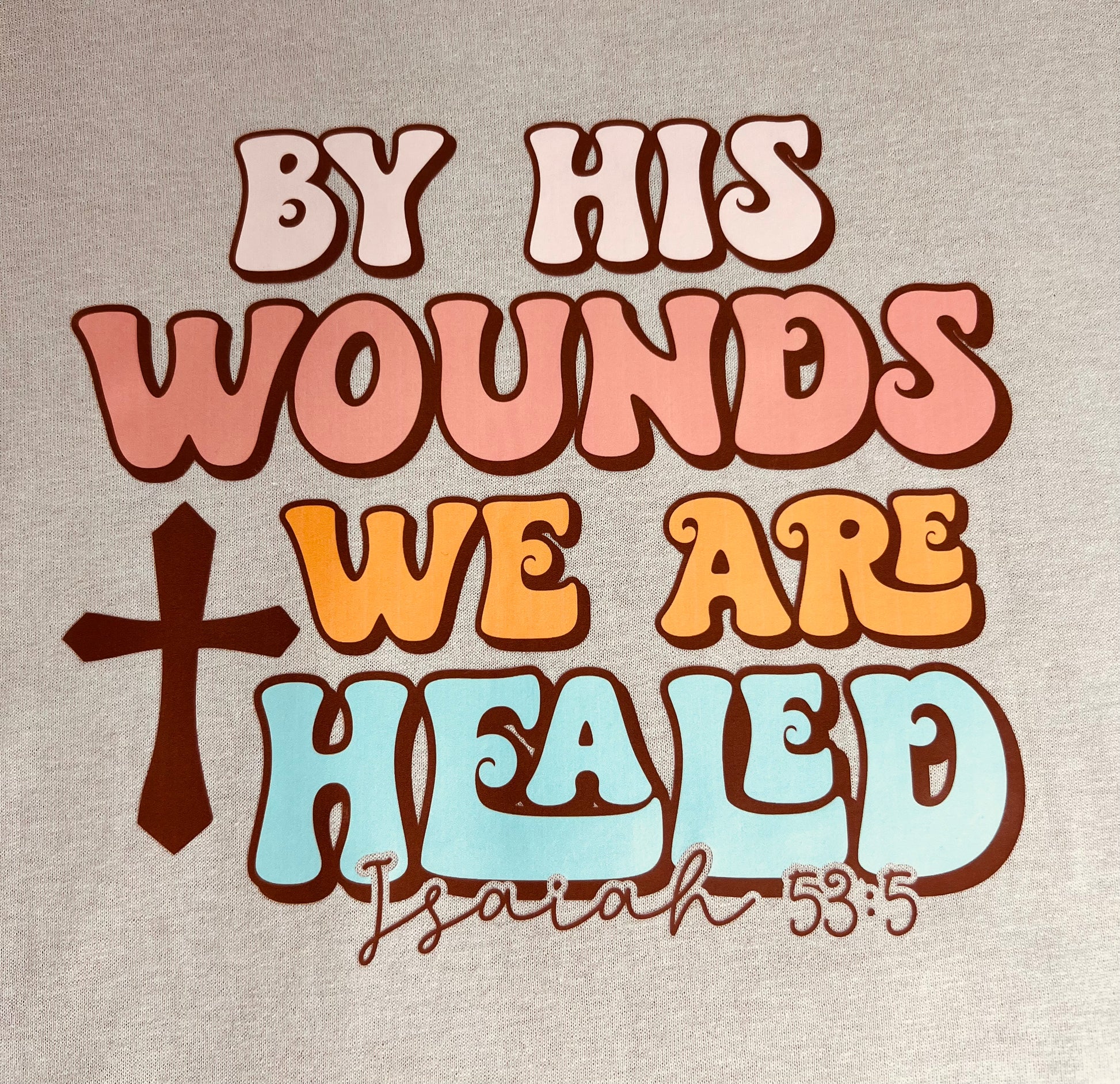🙏 Express your faith with our beautifully designed By His Wounds We Are Healed Tee. This shirt blends a powerful message with a fashionable look, making it perfect for everyday wear or special church gatherings.