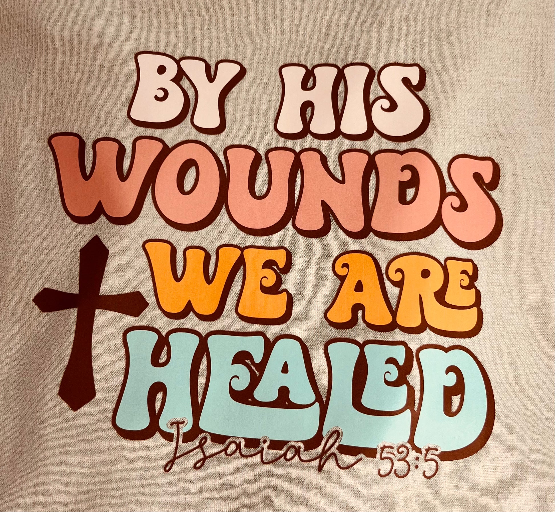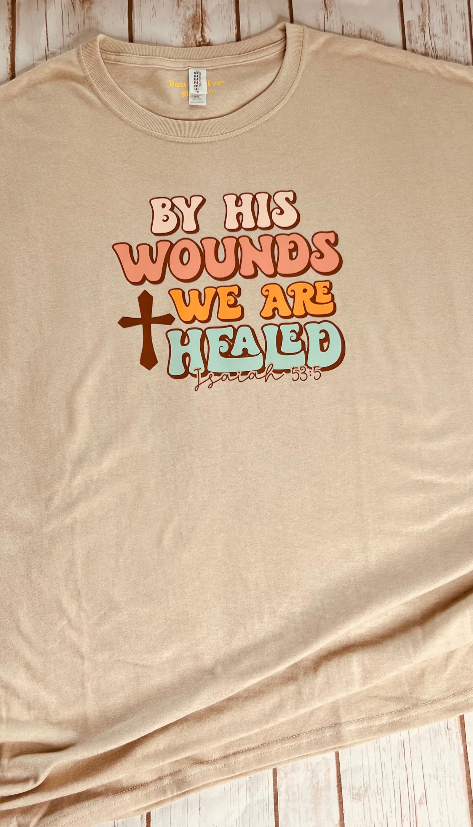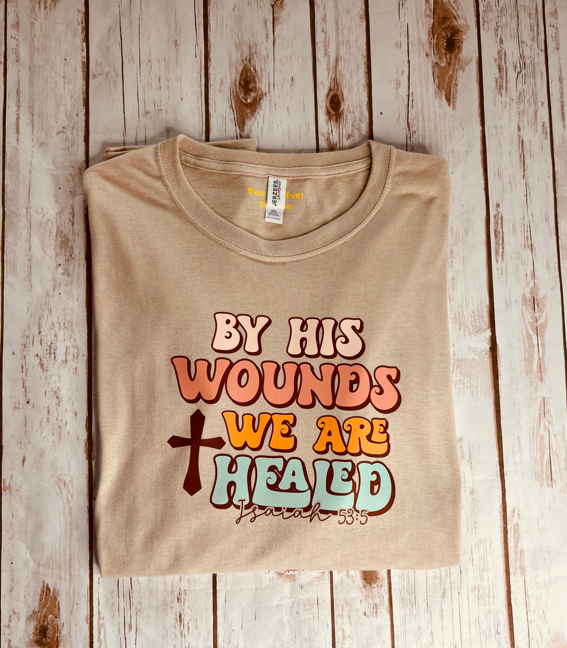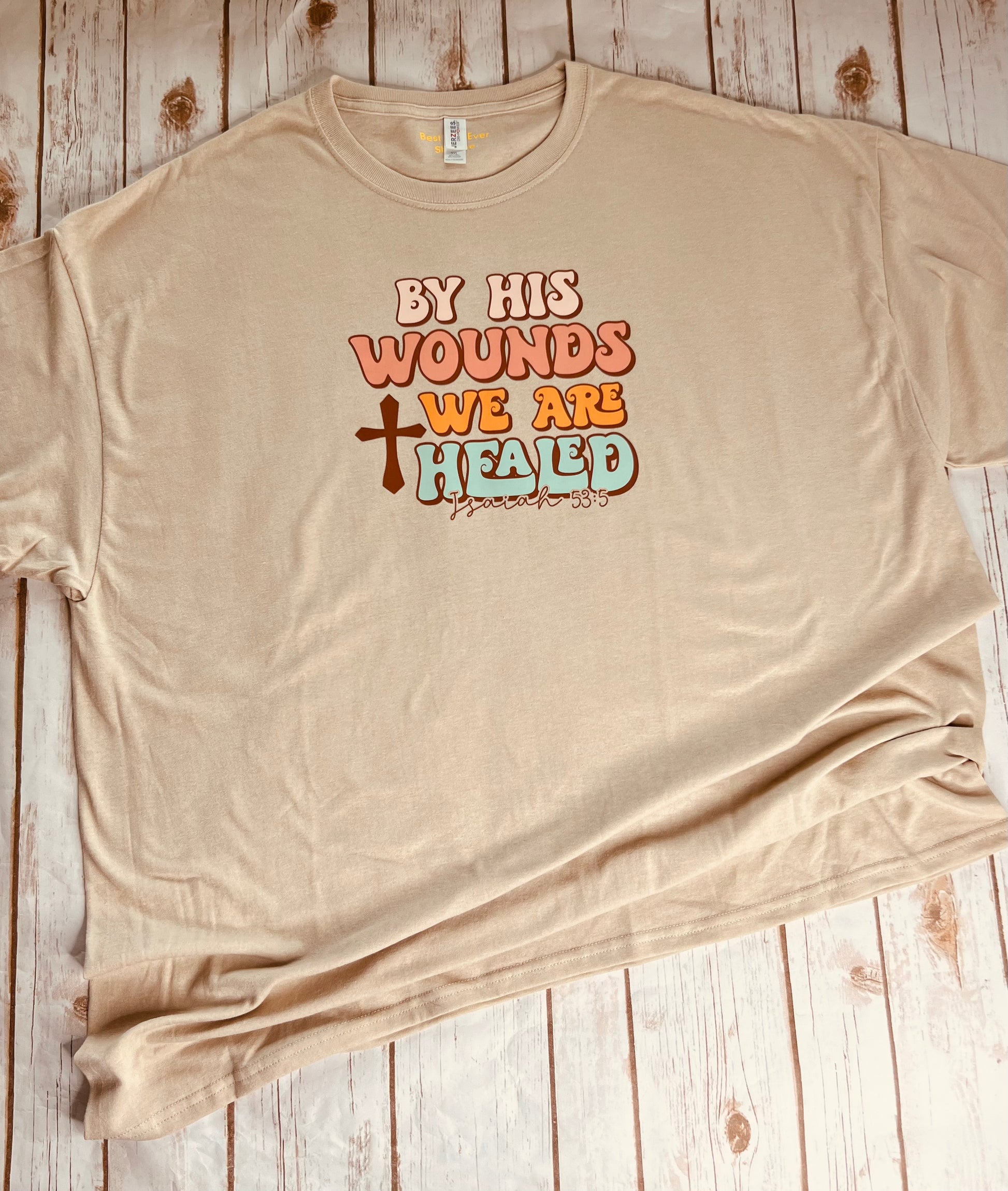 CHRISTIAN Faith T-SHIRT LOGO By His Wounds We Are Healed 3XL Tan