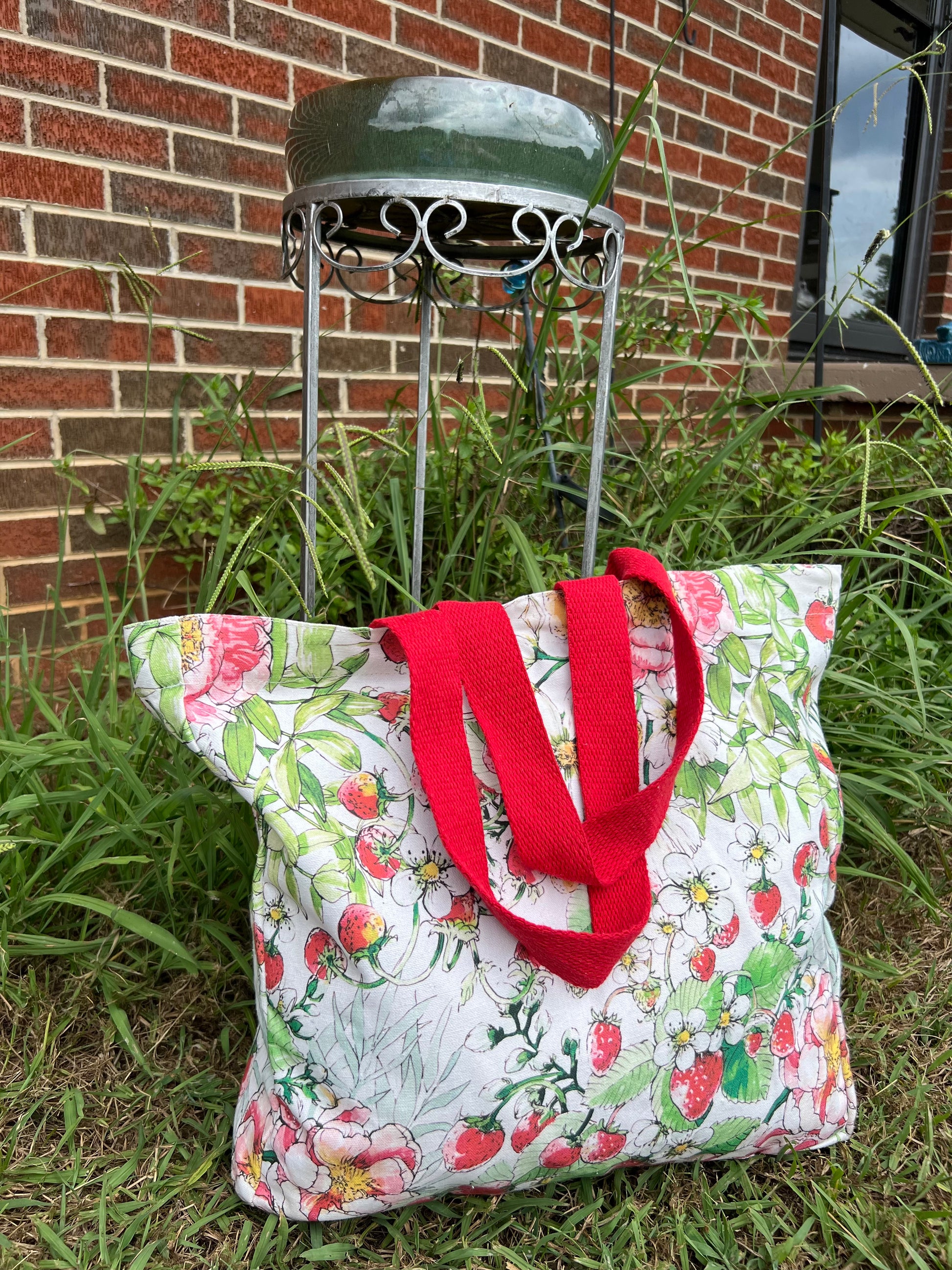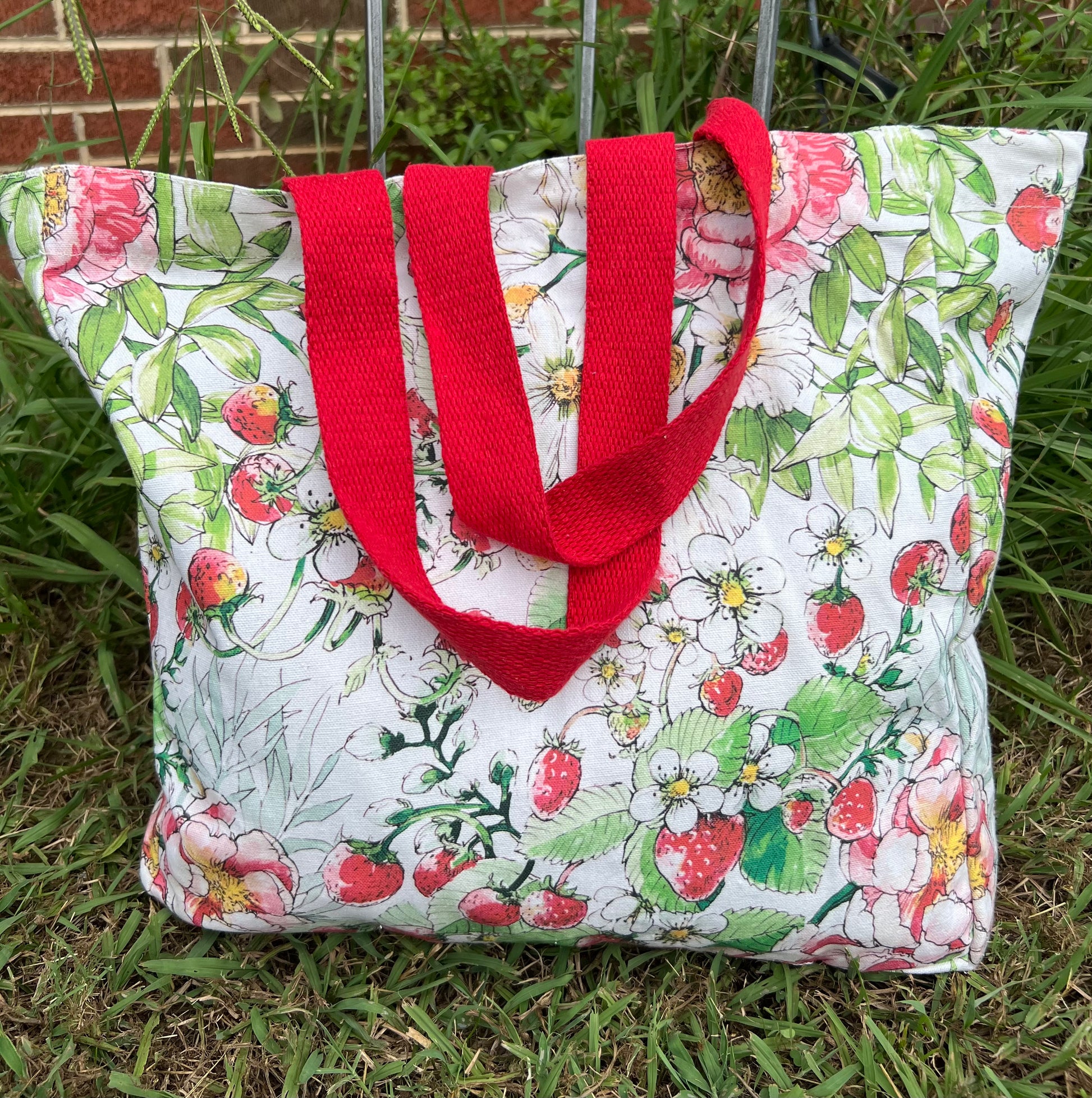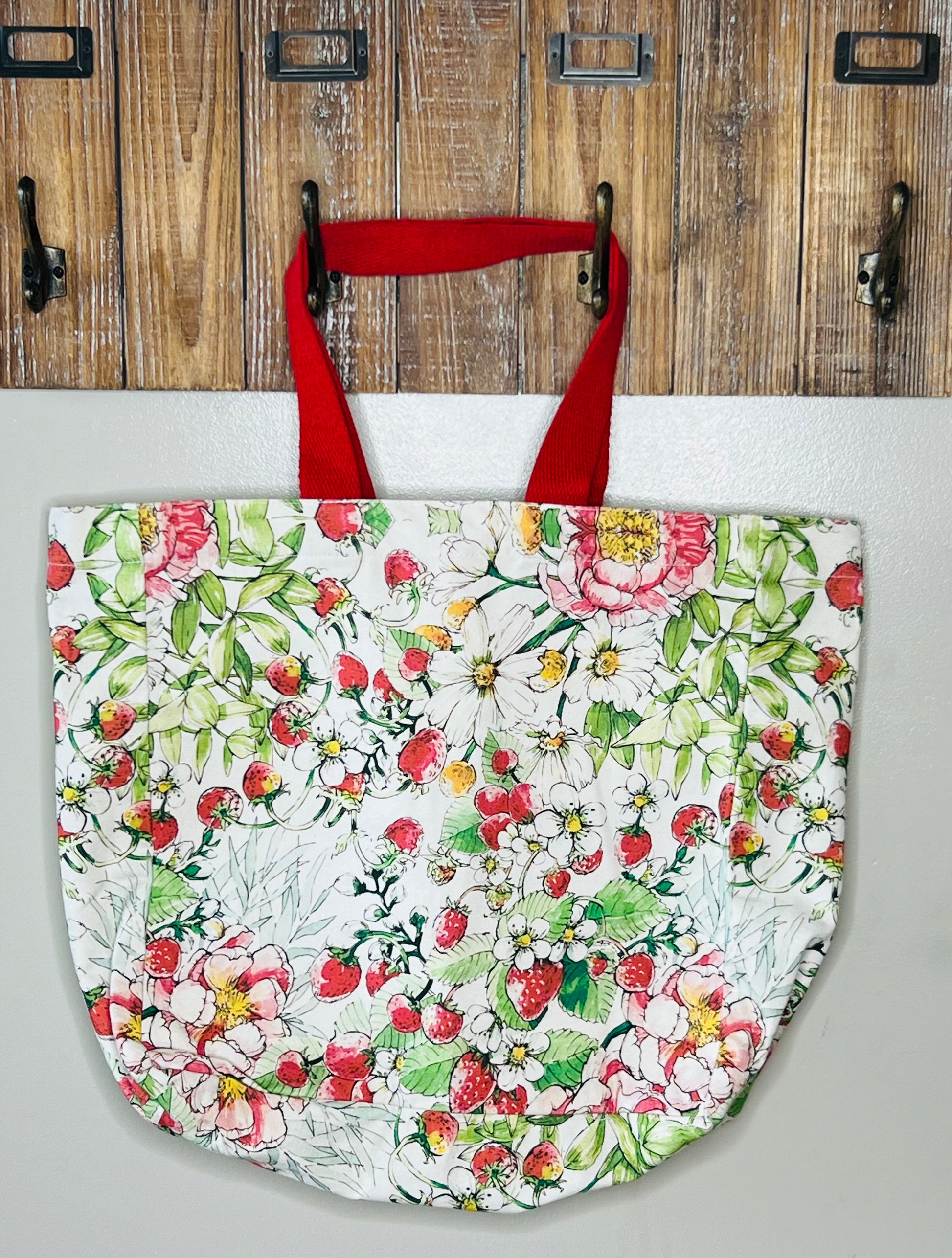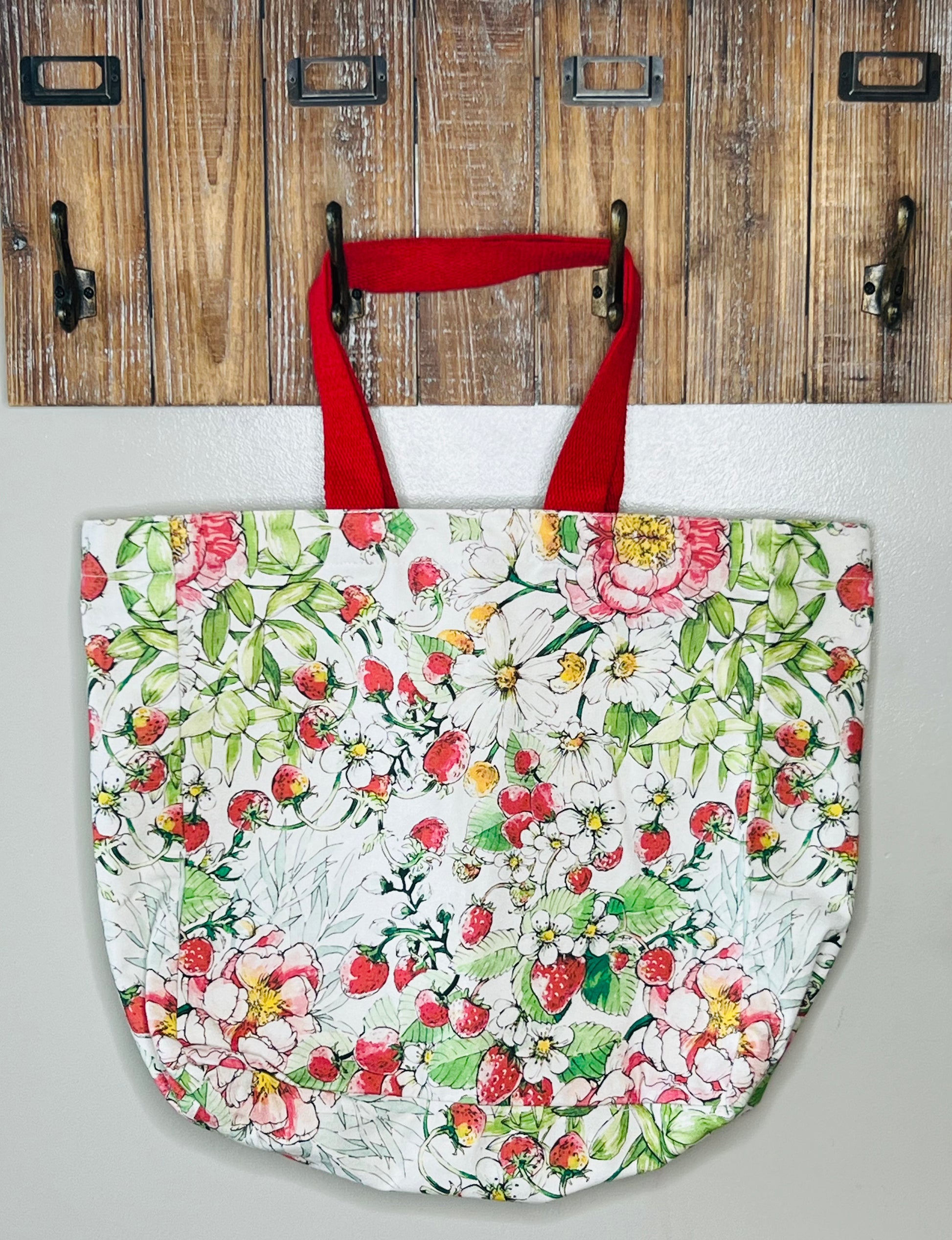 Floral Pink and Red Large Canvas Tote Bag – Strawberry Patch