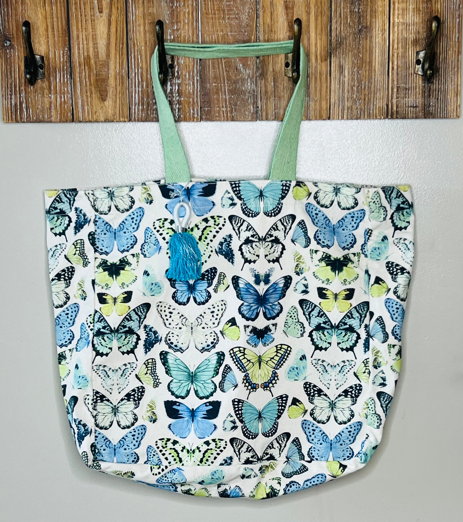 Large Blue Green Butterfly Tote Bag
