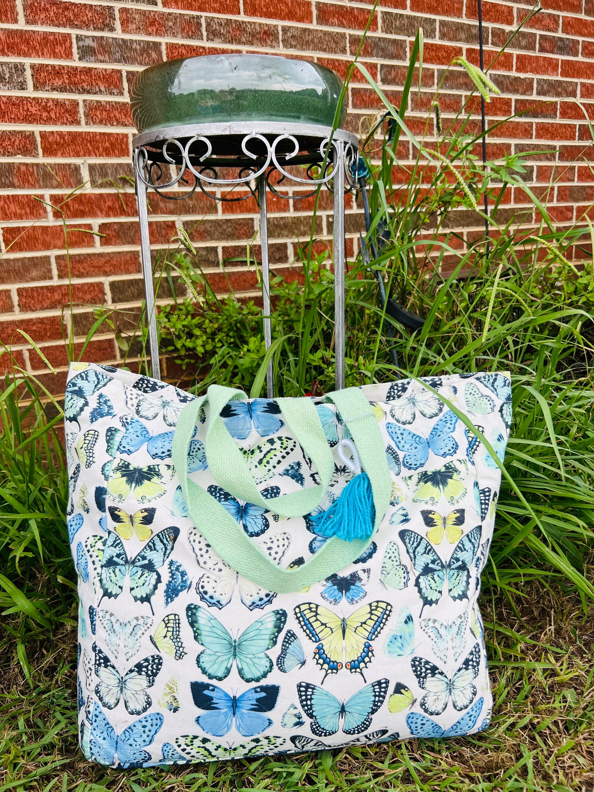 Add a splash of color and charm to your day with this beautiful butterfly tote!