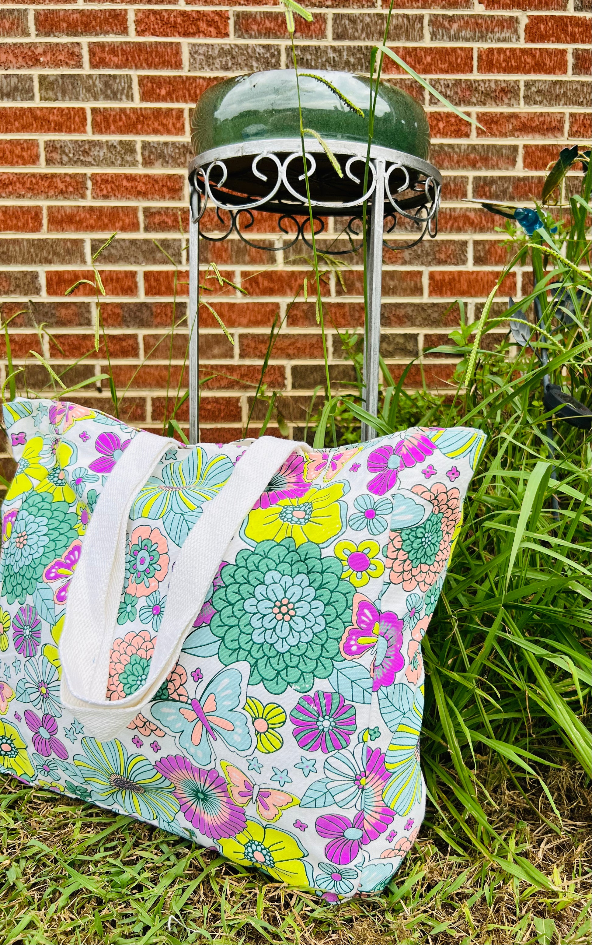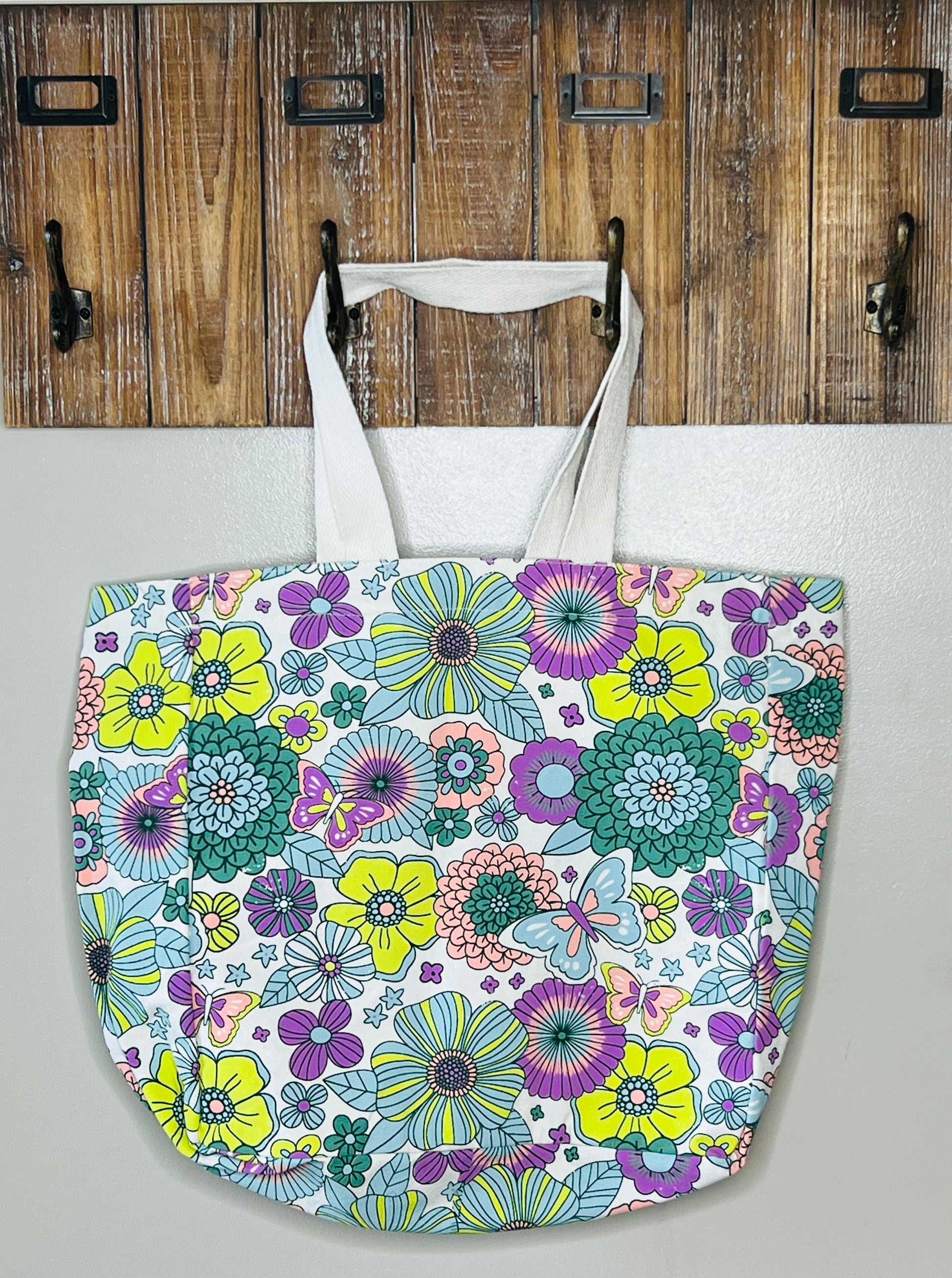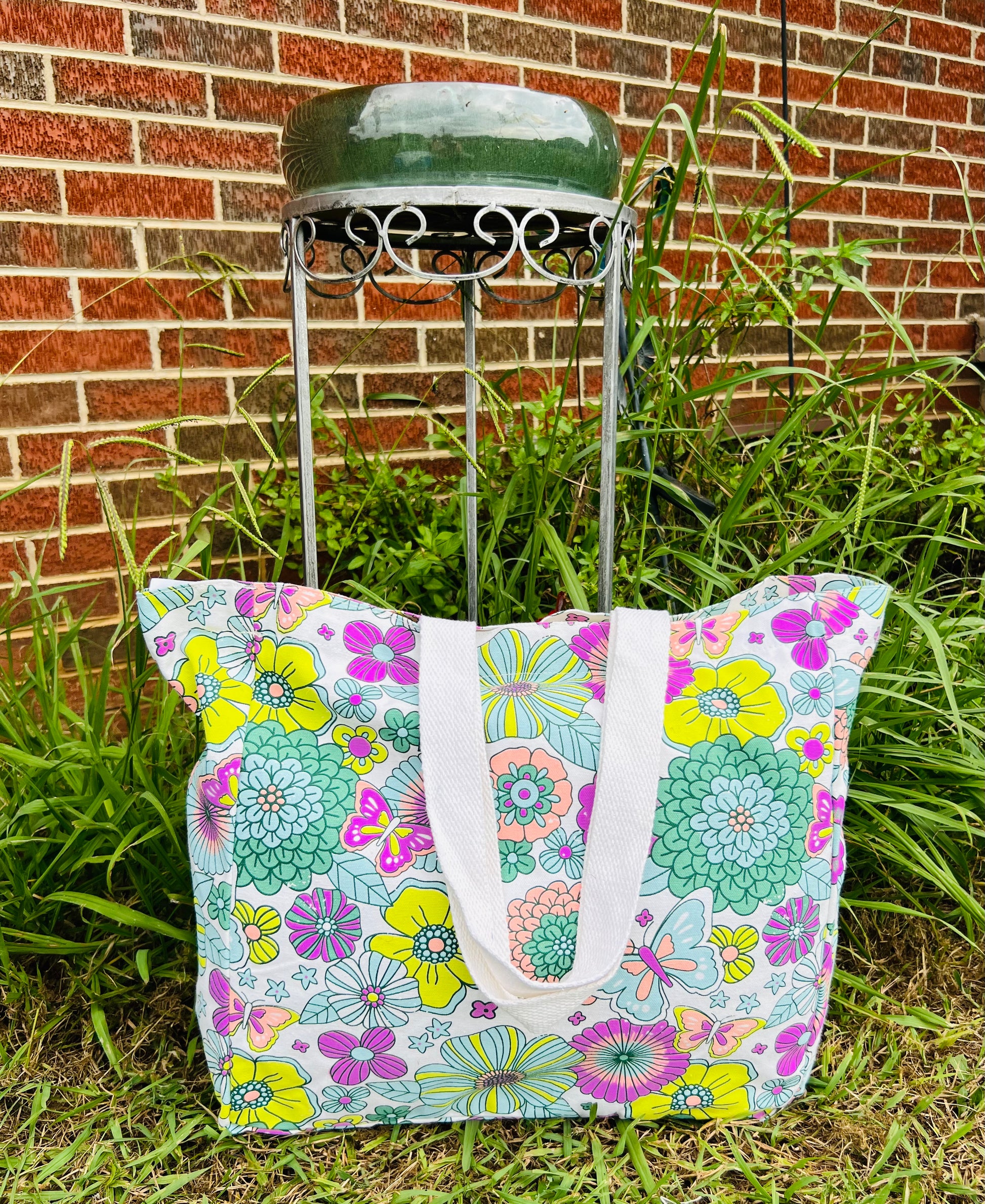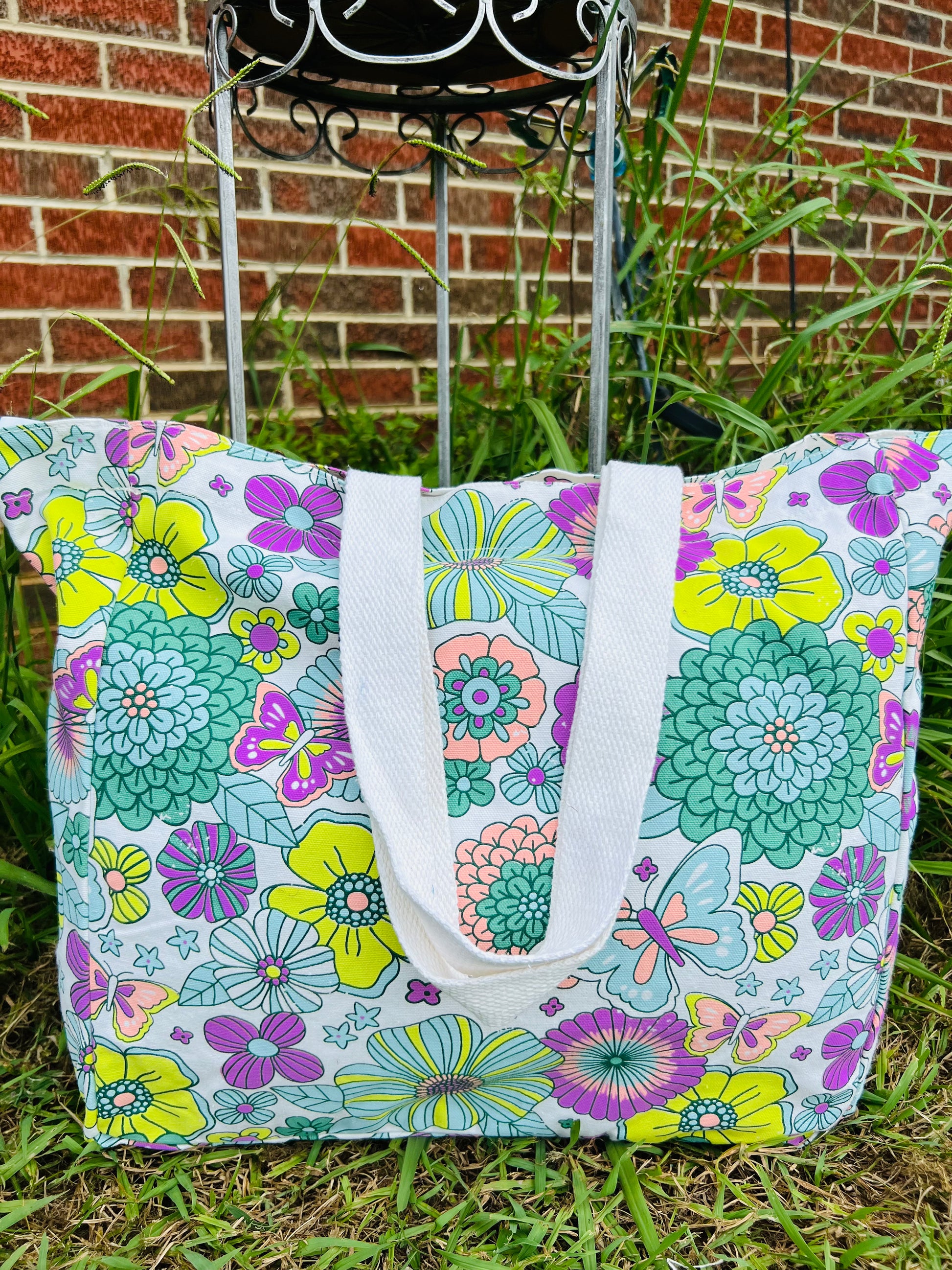 Add a splash of color and charm to your day with this beautiful garden butterfly tote!
