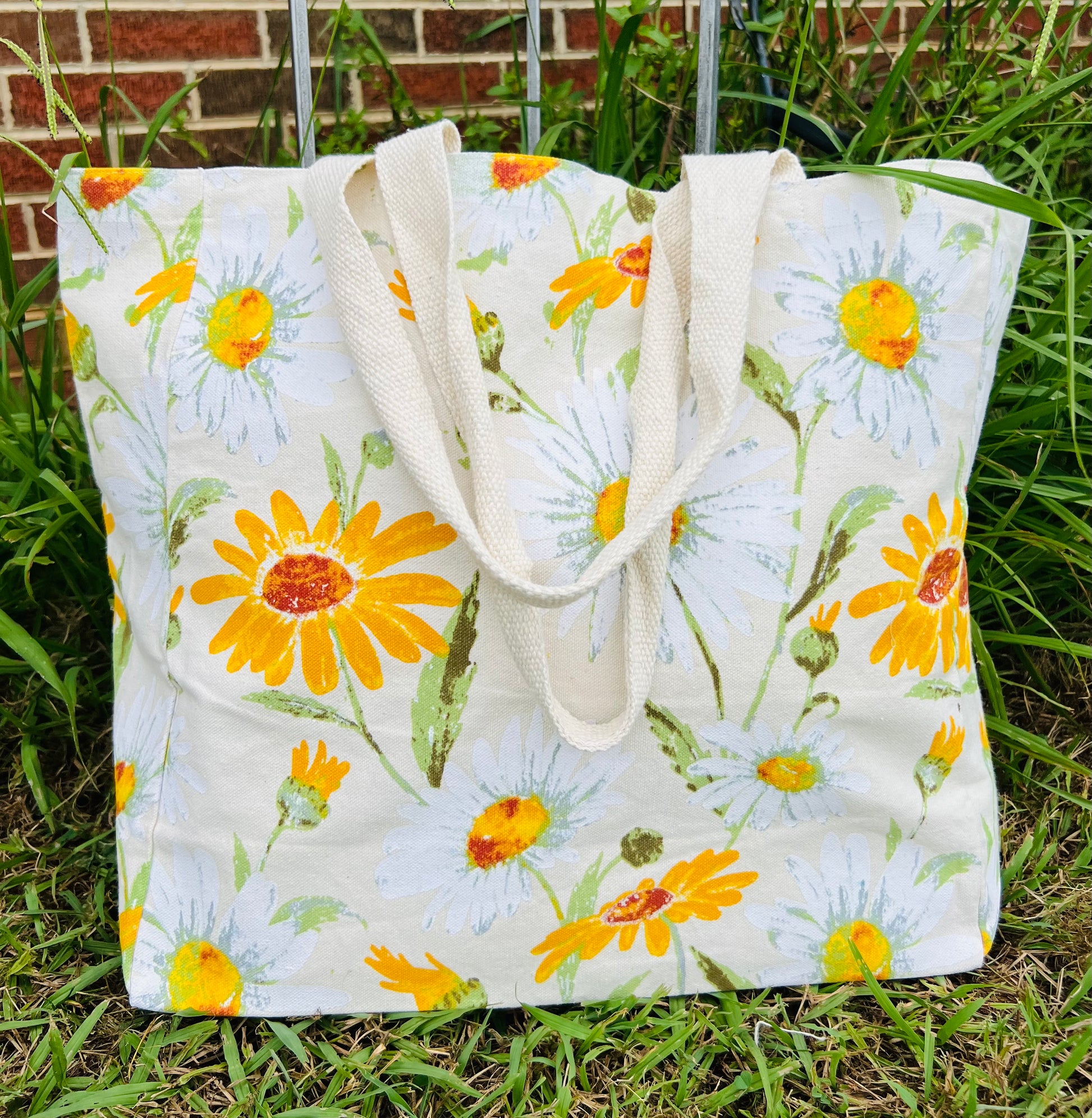 Add a touch of nature to your errands with this beautiful sturdy cotton canvas tote bag featuring charming Black-Eyed Susan and Daisy flowers. Perfect for grocery shopping, running errands, or a day out!